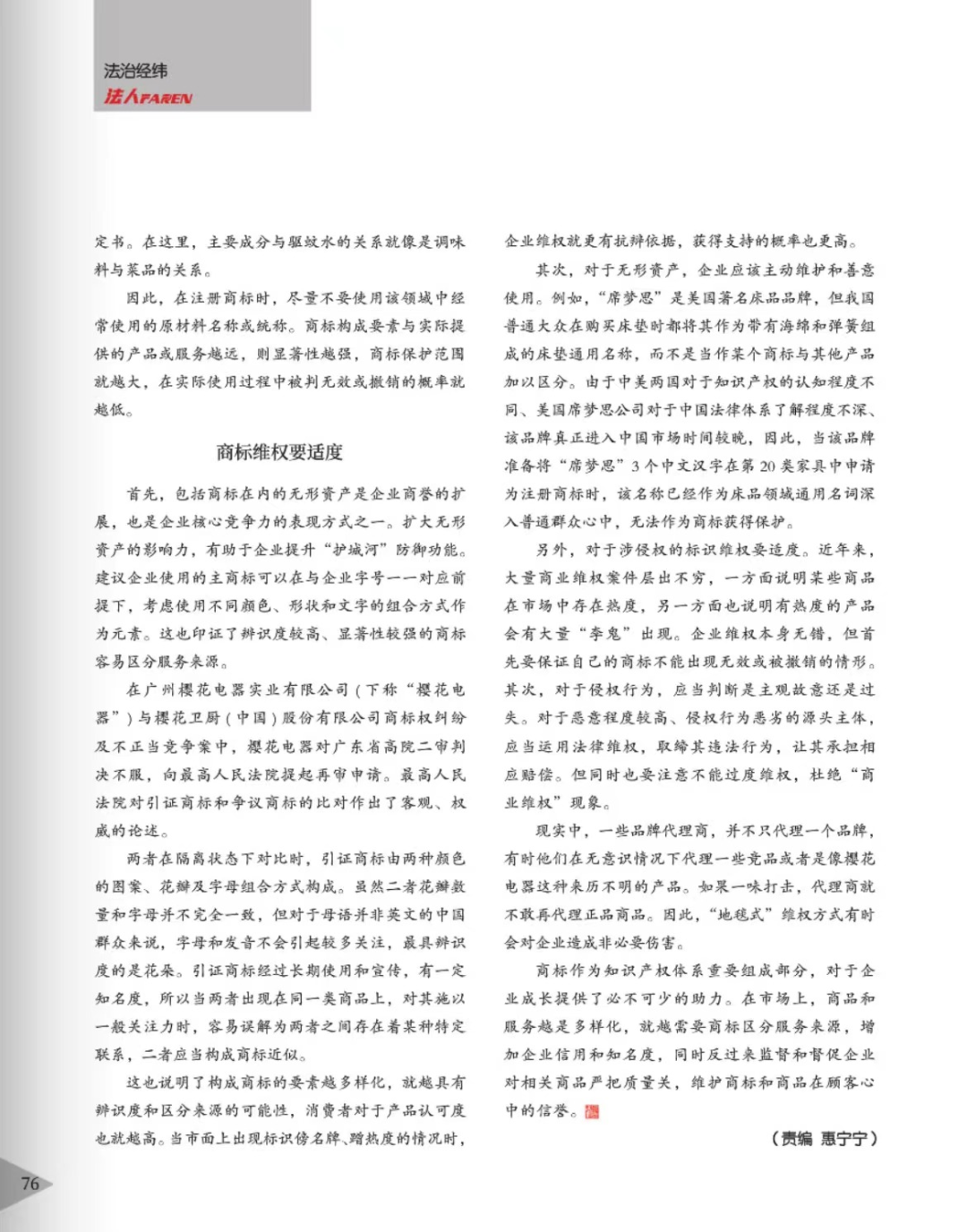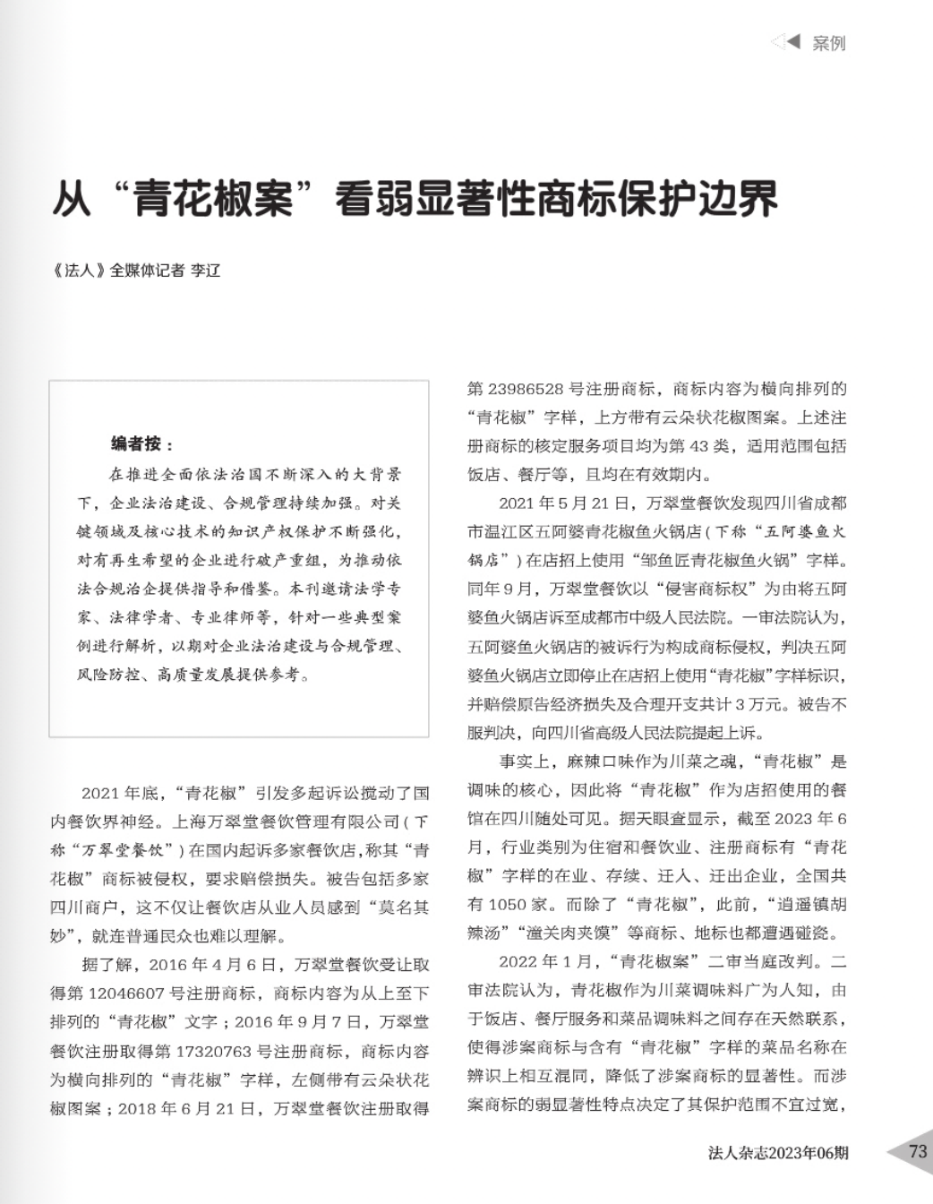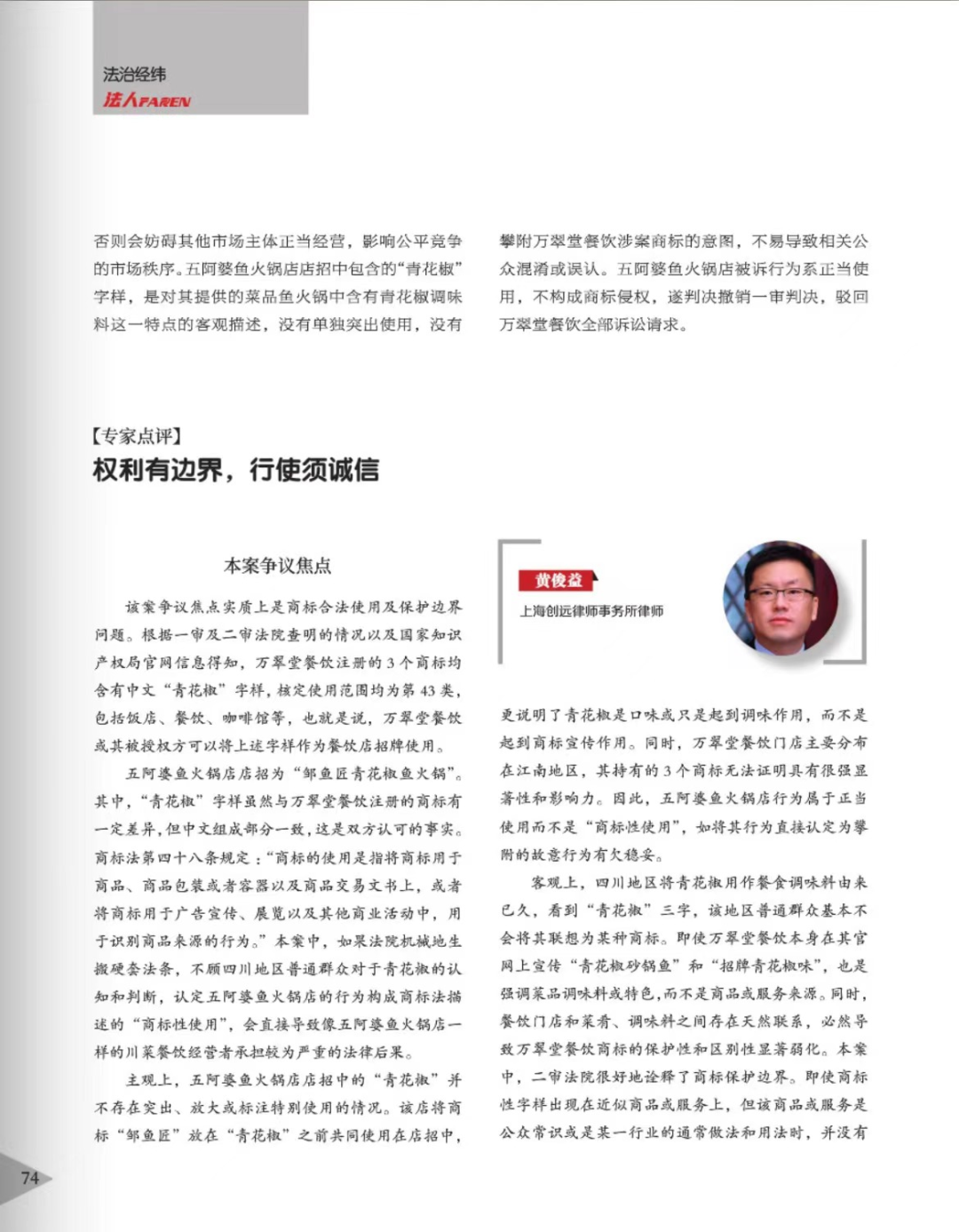 福建辉知简讯 | 辉知队黄俊益律师应“法治日报”旗下杂志邀请,就“青花椒”案发表专家点评